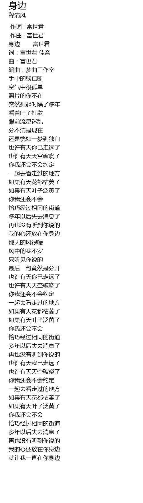 | [00:00.00] | 身边——富世君 |
