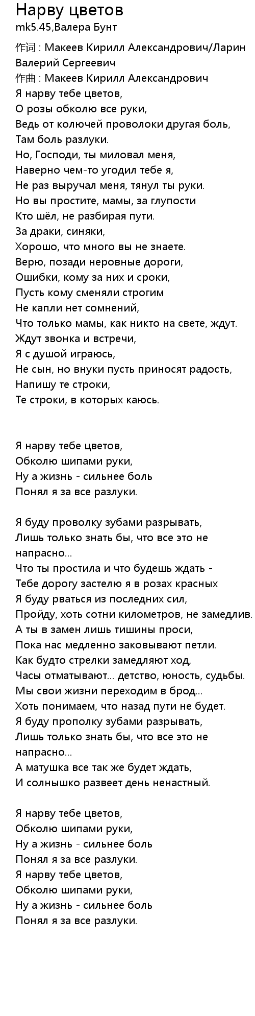 作词 : Макеев Кирилл Александрович/Ларин Валерий Сергеевич |