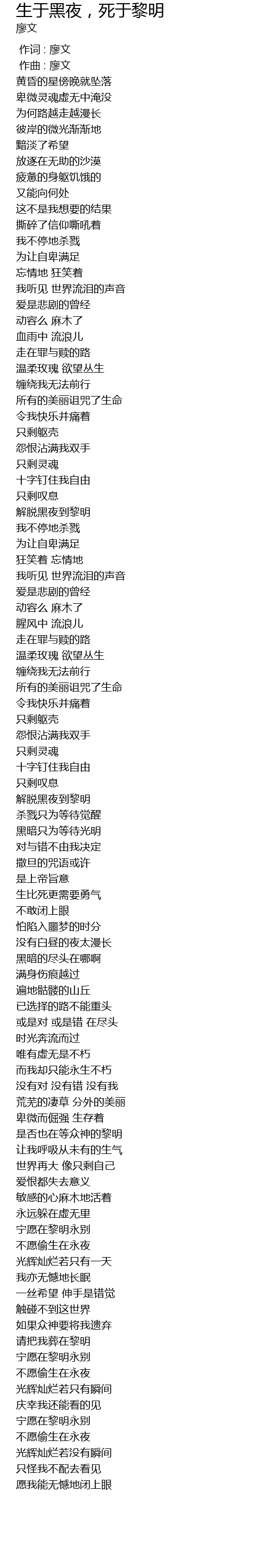 | [06:53.516] | jiě tuō hēi yè dào lí míng |