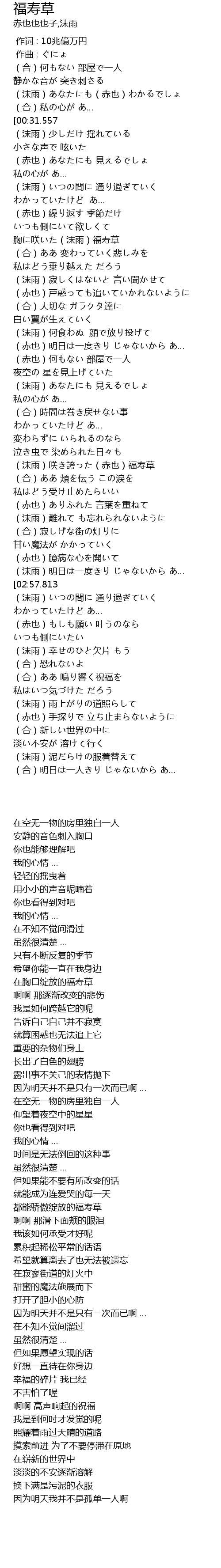 | [02:38.174] | (沫雨)離れて も忘れられないように |