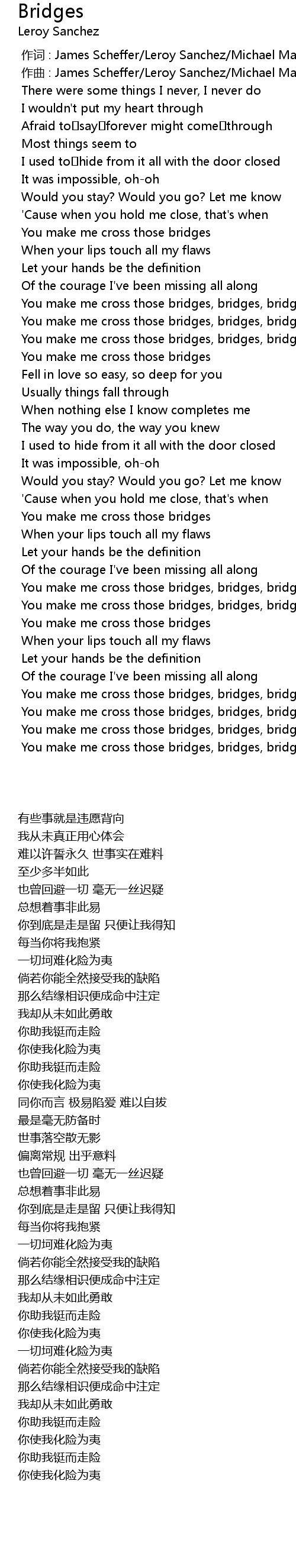 | [02:45.708] | You make me cross those bridges, bridges, bridges |