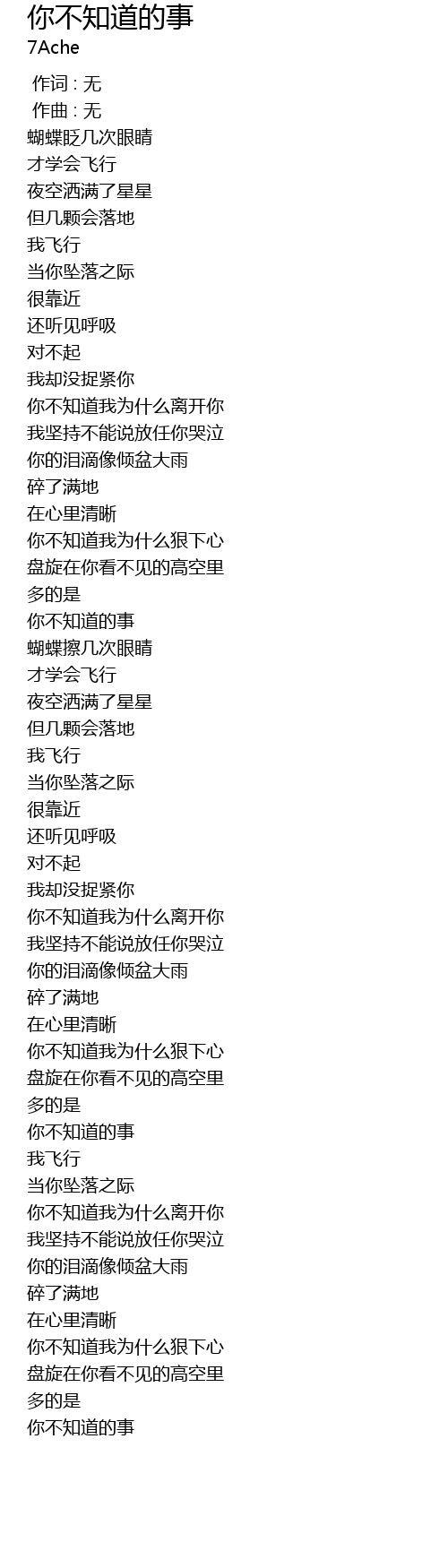 | [02:59.411] | nǐ bù zhī dào de shì |