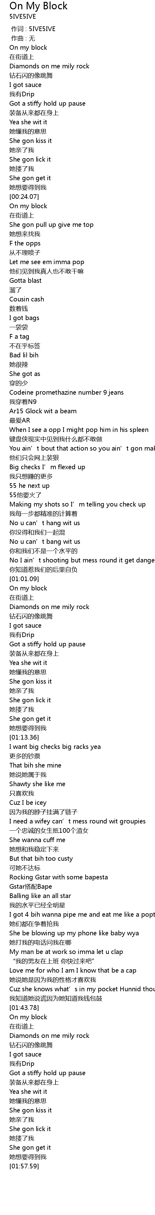 | [01:01.28] | On my block |