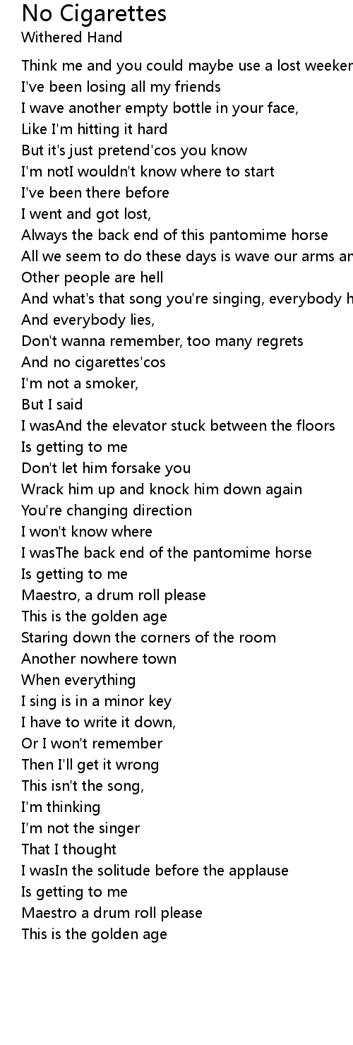 And no cigarettes'cos |