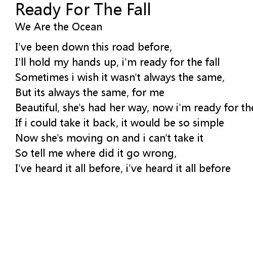 | Beautiful, she's had her way, now i'm ready for the fall | |