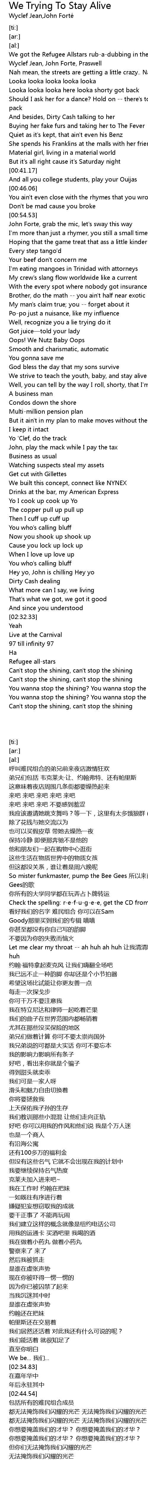 | [00:09.34] | Wyclef Jean, John Forte, Praswell |