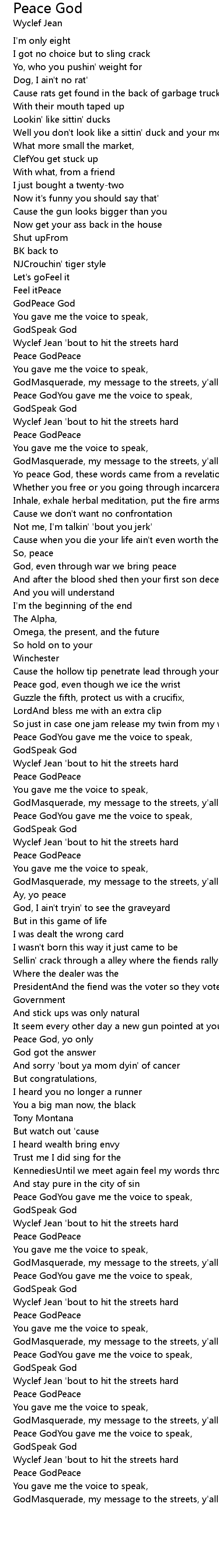 Peace god, even though we ice the wrist |