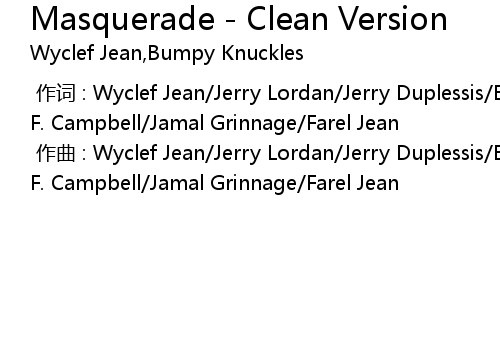 | [00:00.000] | 作曲 : Wyclef Jean/Jerry Lordan/Jerry Duplessis/Eric Murry/James F. Campbell/Jamal Grinnage/Farel Jean |