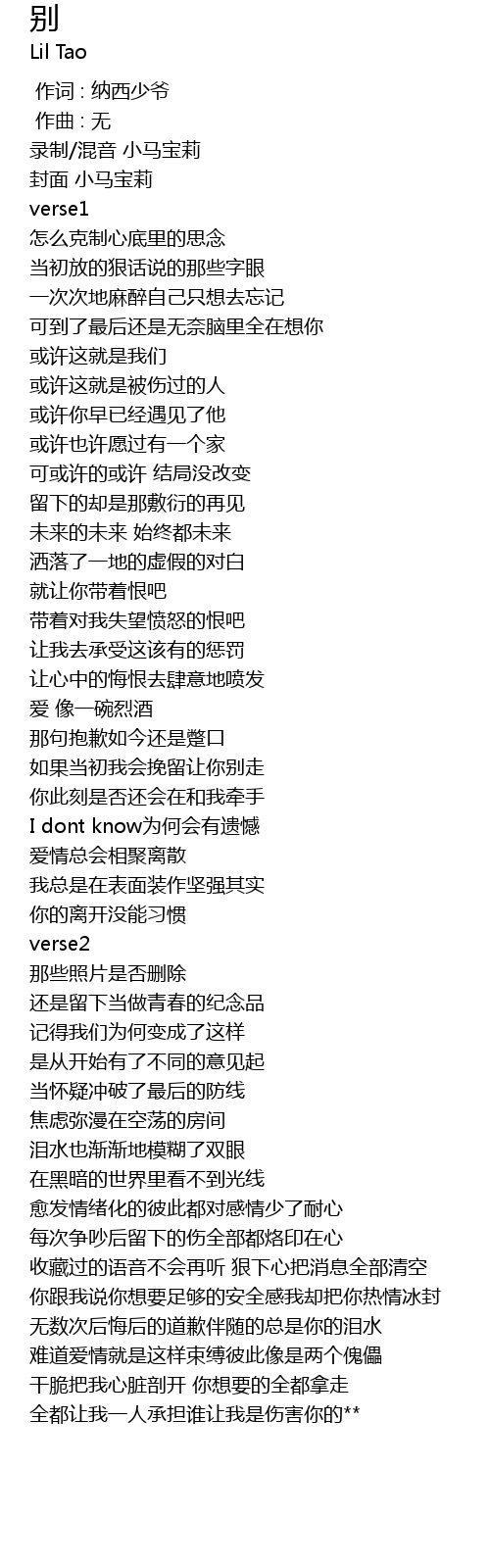 | Song | 别 |