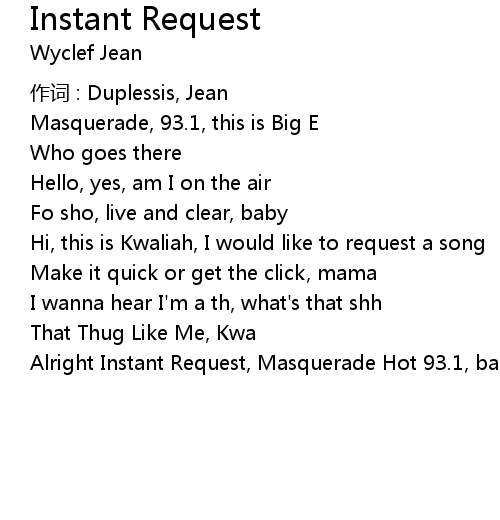 | Alright Instant Request, Masquerade Hot 93.1, baby |