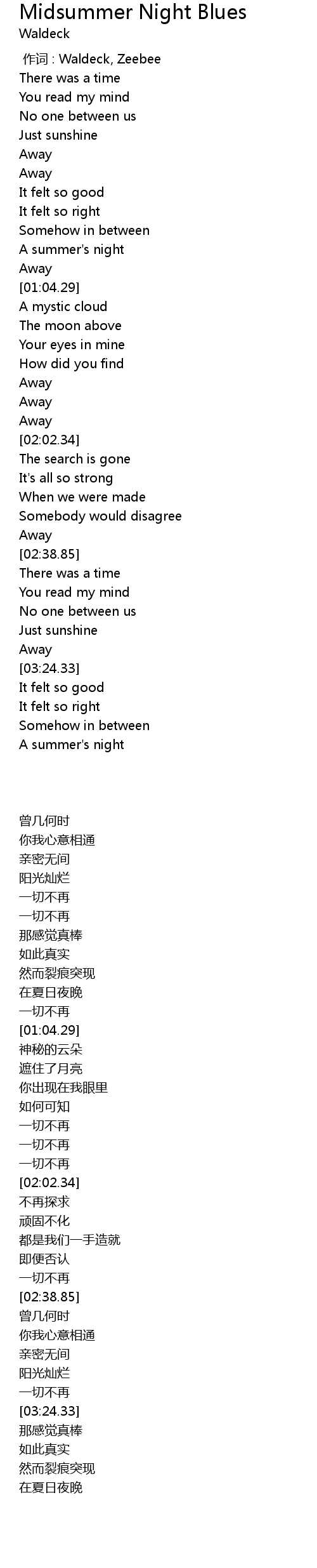 Midsummer Night Blues Lyrics