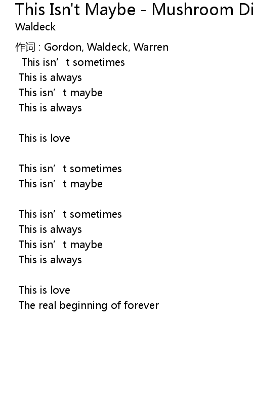 | Song | This Isn't Maybe - Mushroom Dive's Lo Fly Push Up 2002 |