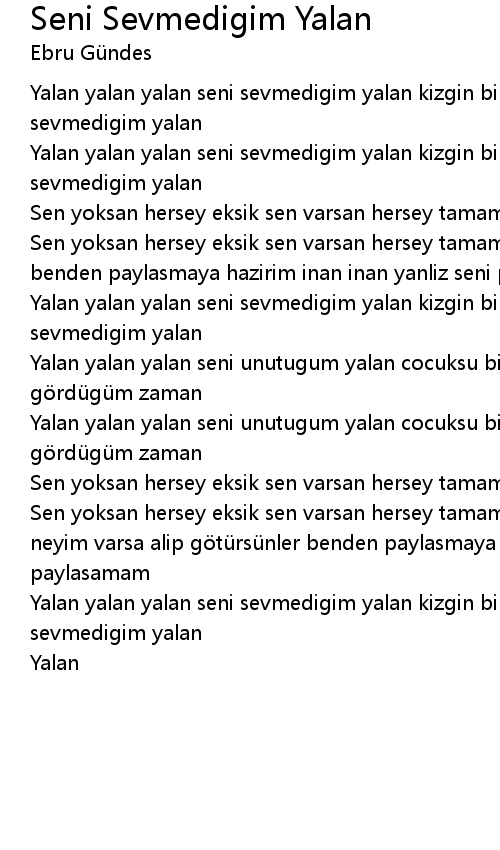 | Yalan yalan yalan seni sevmedigim yalan kizgin bir aninda s yledim yalan seni sevmedigim yalan | |
