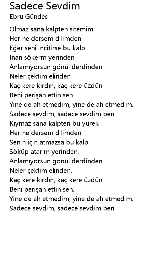 | Sadece sevdim, sadece sevdim ben. | |