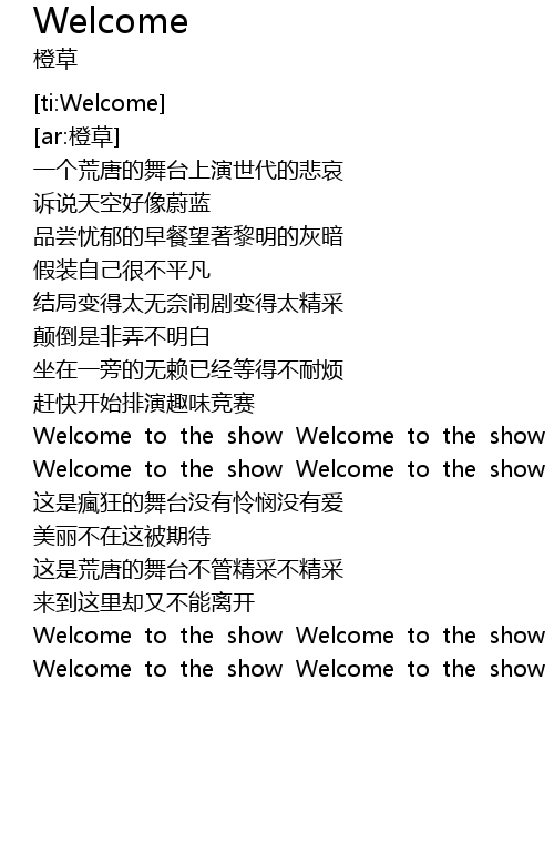 | [01:52.87] | Welcome to the show Welcome to the show |