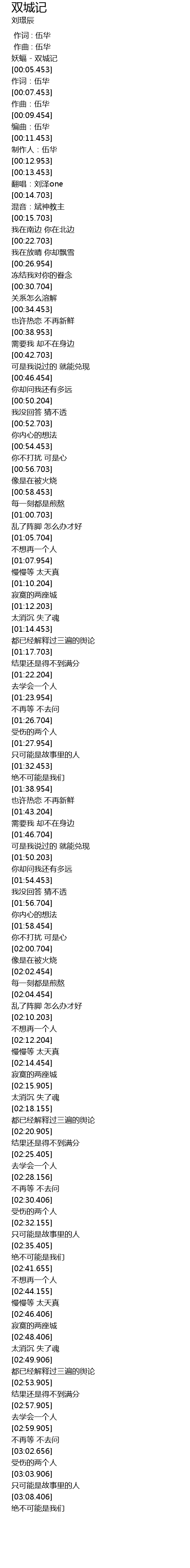 | [00:03.203] | 妖蝠 - 双城记 |