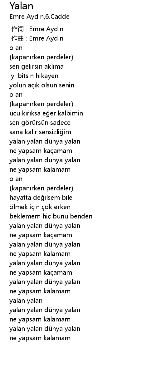 | [00:00.00] | zuò cí : Emre Ayd n |