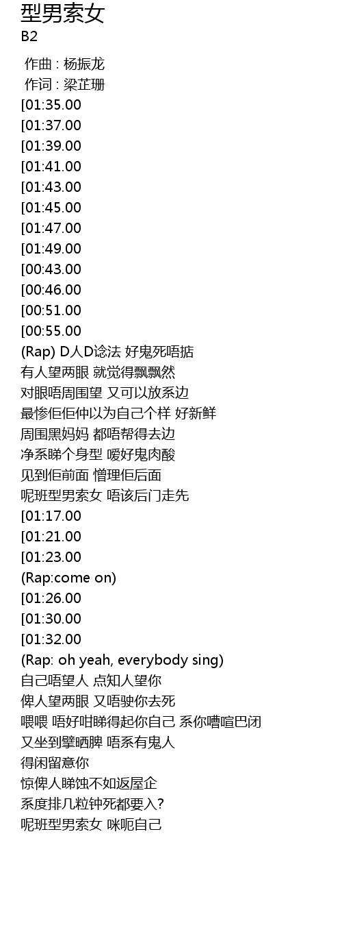 | [02:41.00] | 呢班型男索女 咪呃自己 |