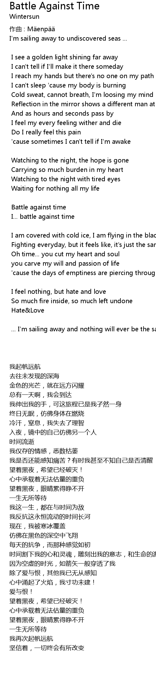 | 'cause the days of emptiness are piercing through me like arrows | |