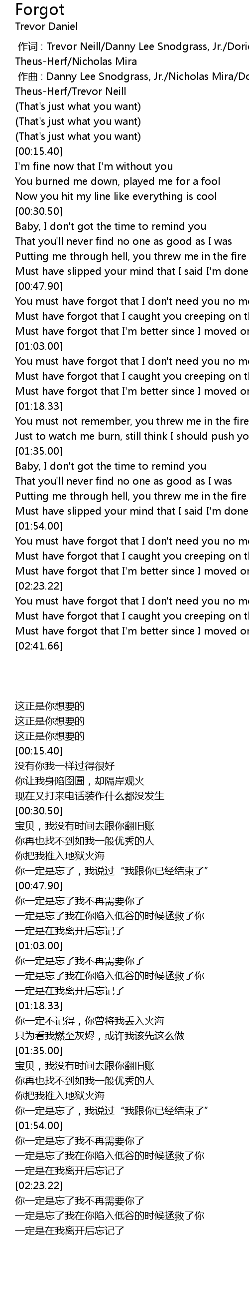| [00:48.30] | You must have forgot that I don't need you no more |