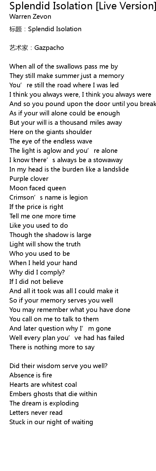 | biao ti: Splendid Isolation | |