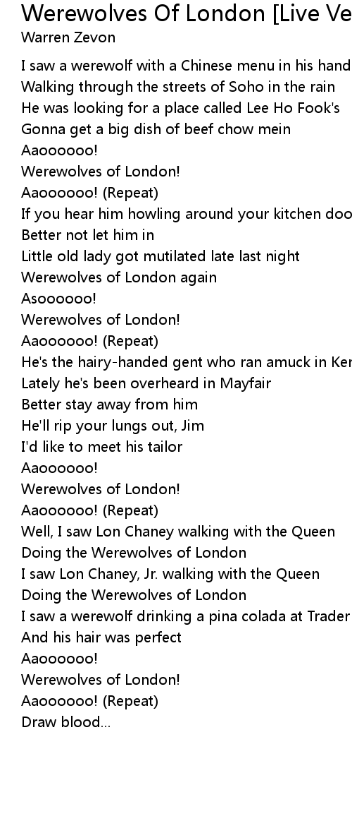 I saw a werewolf drinking a pina colada at Trader Vic's |