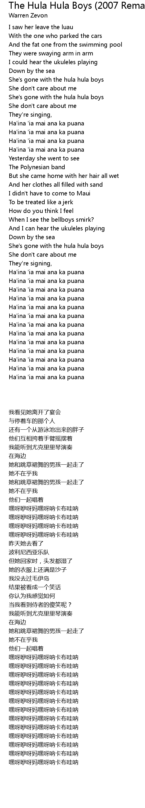 The Hula Hula Boys (2007 Remastered LP Version) Lyrics