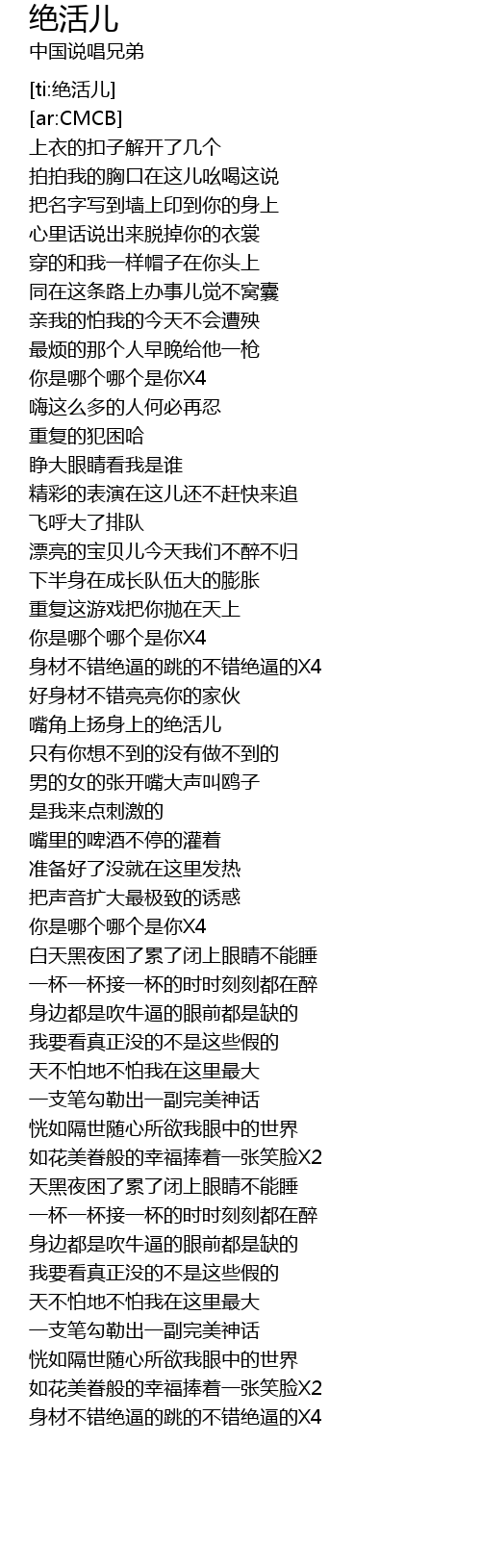 | [00:57.419] | 你是哪个哪个是你X4 |