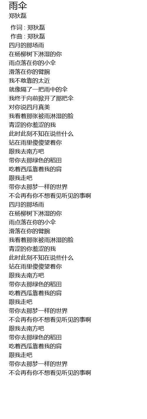 | [00:01.000] | 作曲 : 郑狄磊 |