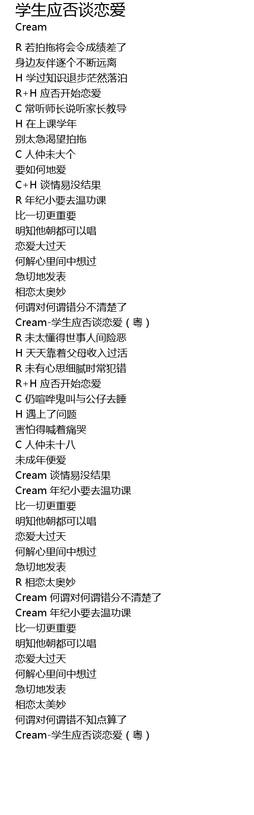 | [01:22.610] | Cream-学生应否谈恋爱(粤) |