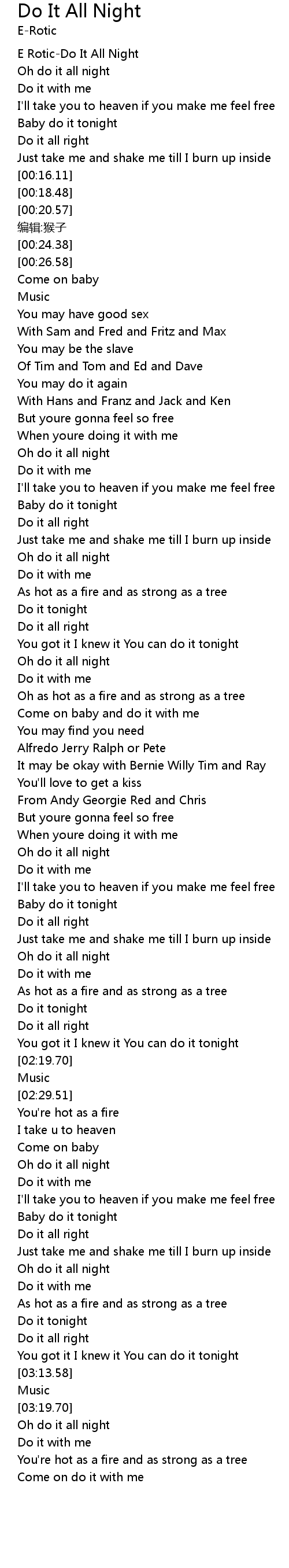 | [03:09.11] | You got it I knew it You can do it tonight |