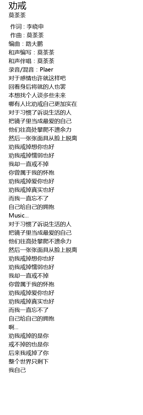 | [01:39.688] | quàn wǒ jiè diào xiǎng nǐ yě hǎo |