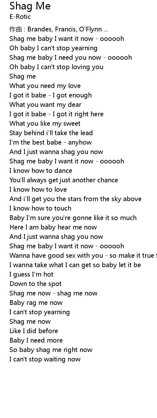 | Shag me baby I want it now oooooh | |