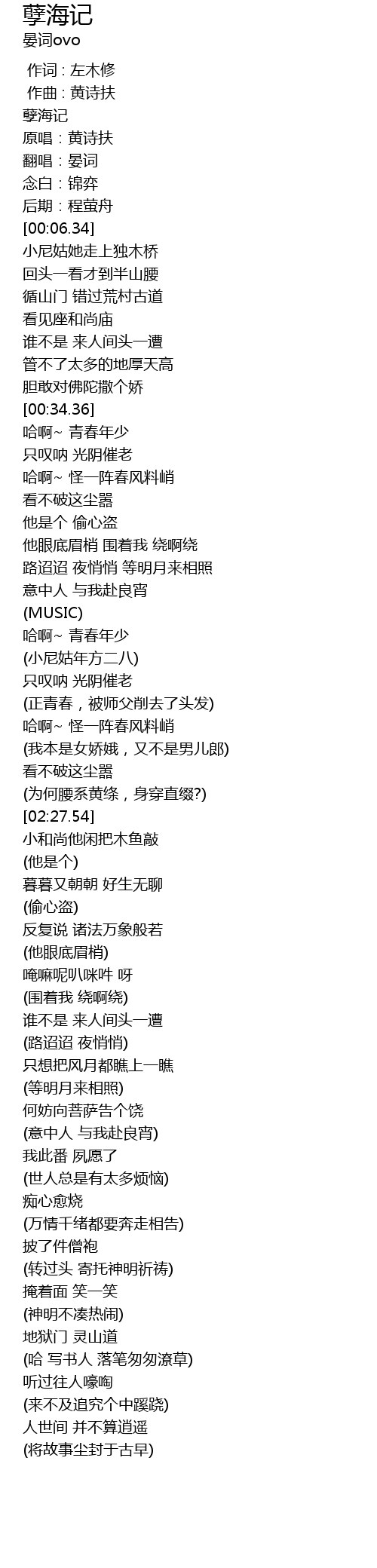 | [02:02.64] | (小尼姑年方二八) |