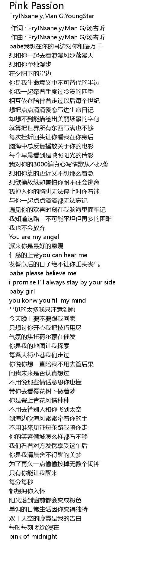 | [00:00.000] | 作词 : FryINsanely/Man G/汤睿圻 |