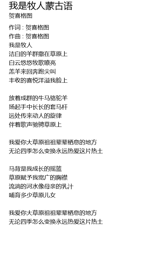 | 我爱你大草原祖祖辈辈栖息的地方 | |