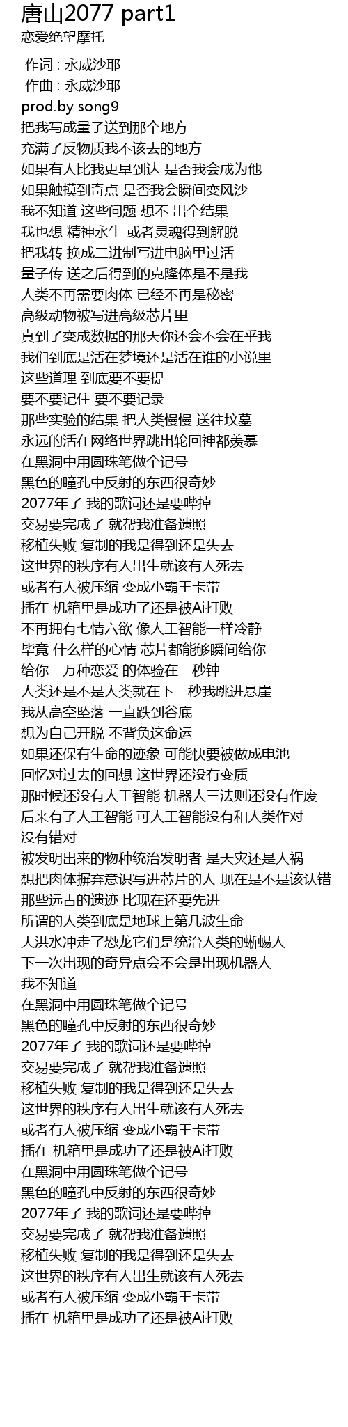 | Song | 唐山2077 part1 |