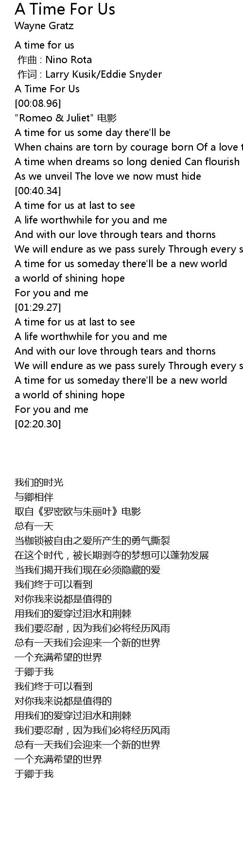 | [01:11.42] | A time for us someday there' ll be a new world |