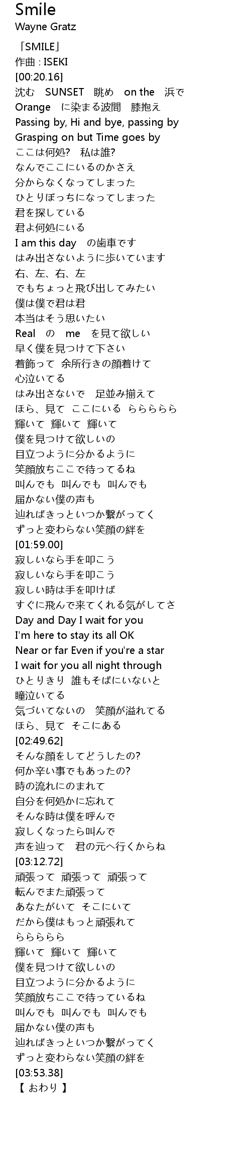 | [03:46.53] | ずっと変わらない笑顔の絆を |