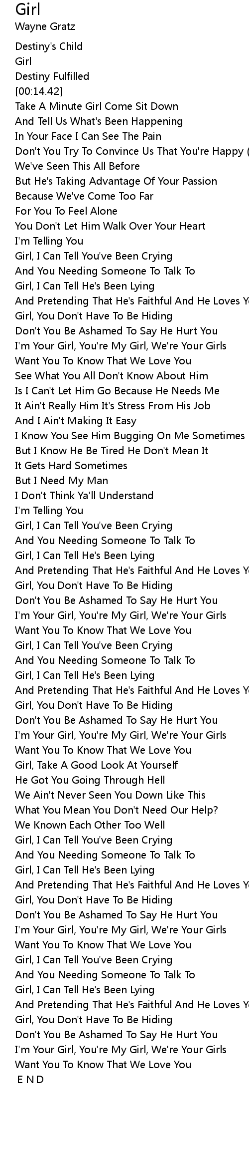 | [02:32.39] | Girl, I Can Tell You've Been Crying |