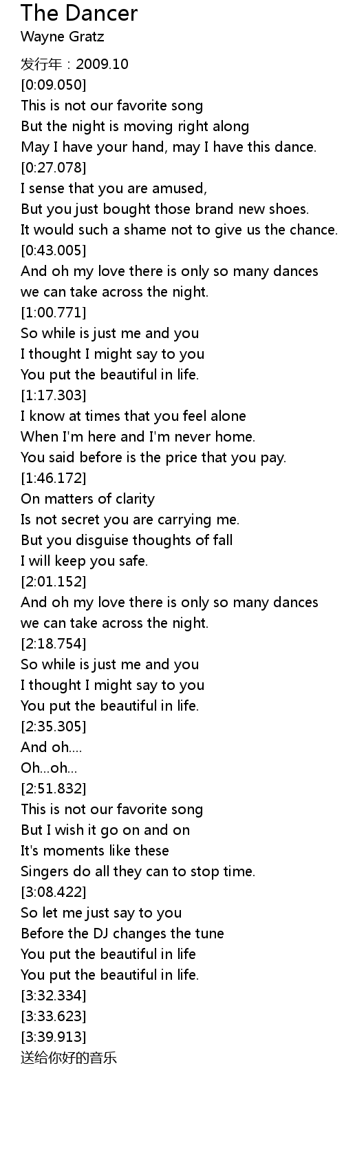 | [3:43.325] | sòng gěi nǐ hǎo de yīn yuè |