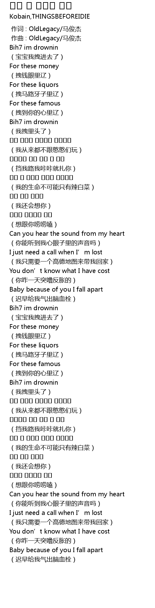 | [00:00.000] | 作词 : OldLegacy/马俊杰 |