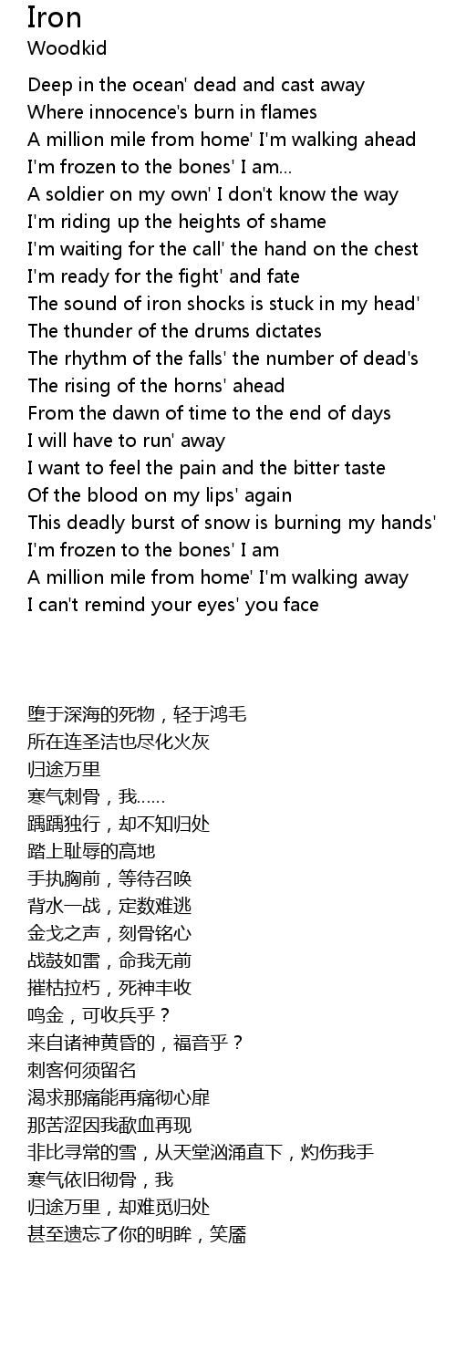 | [01:15.469] | The sound of iron shocks is stuck in my head' |