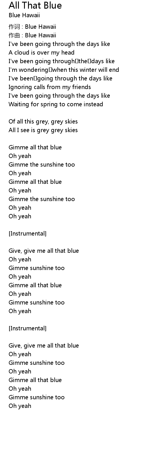 | Give, give me all that blue | |