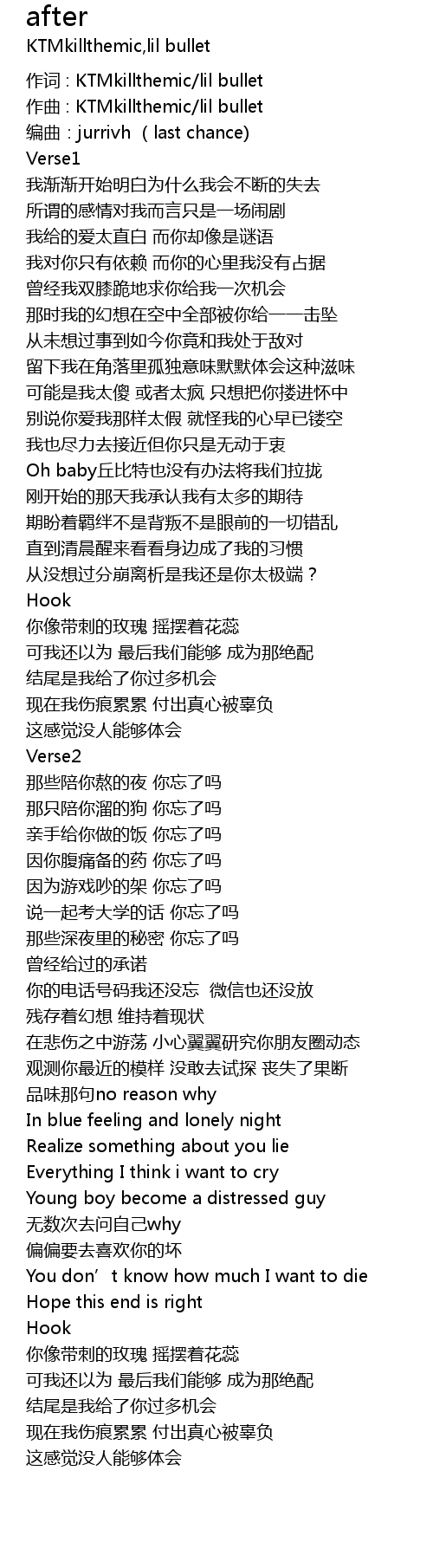 | 作词 : KTMkillthemic/lil bullet | |