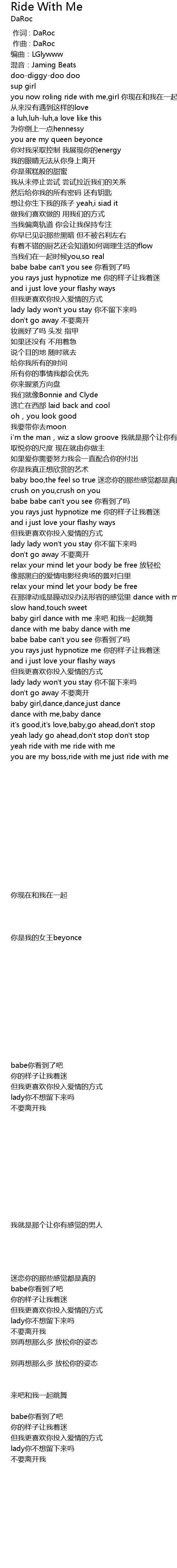 | [00:18.090] | you now roling ride with me, girl nǐ xiàn zài hé wǒ zài yì qǐ |