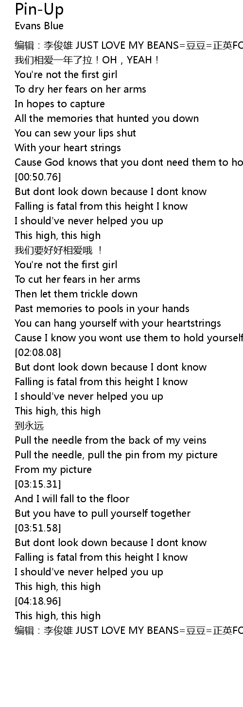 | [02:02.51] | Cause I know you wont use them to hold yourself up anymore |