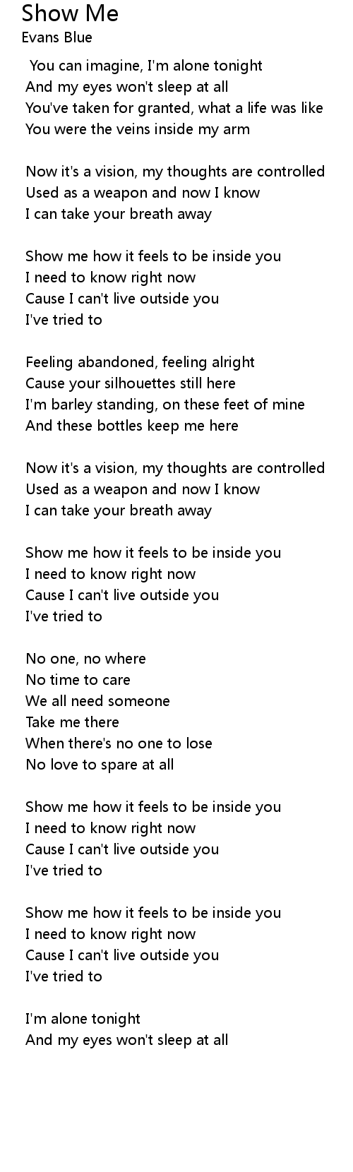 Show me how it feels to be inside you |