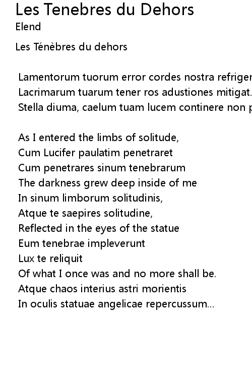 | Song | Les Tenebres du Dehors |