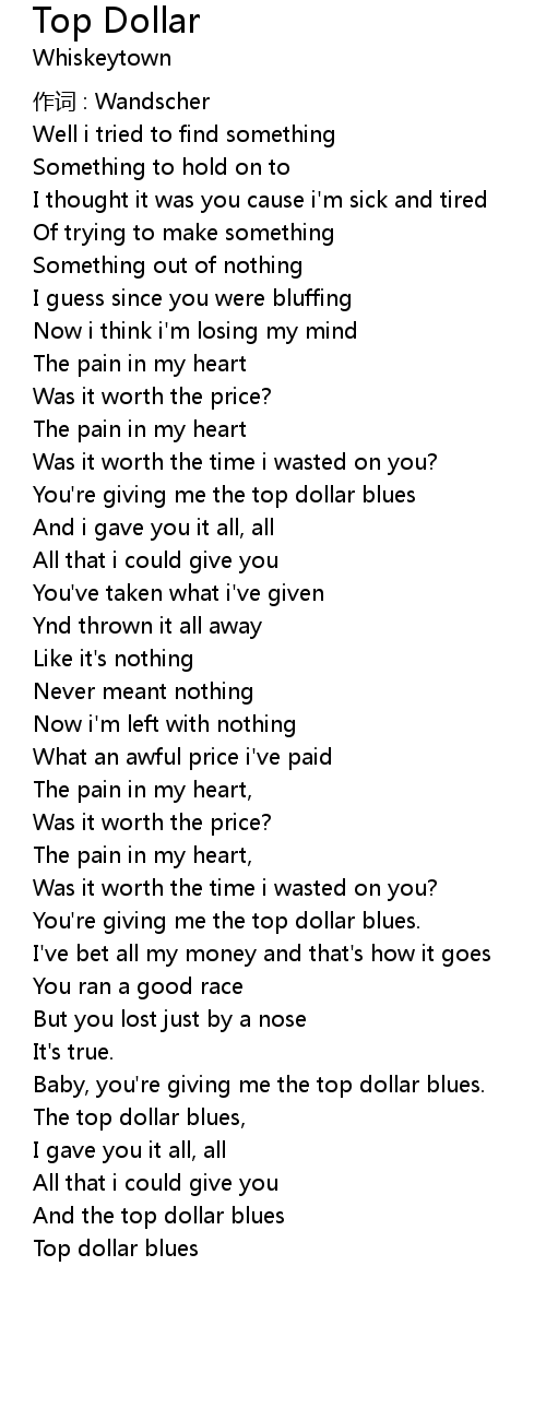 | You're giving me the top dollar blues | |